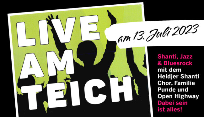Am 13. Juli 2023 »Live am Teich« vor dem Haupteingang der Buchholzer Höfe.